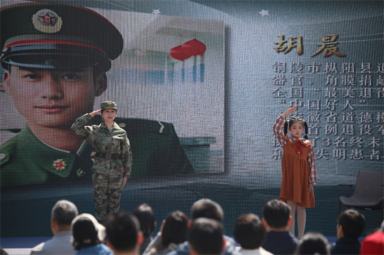 活动现场通过诗文朗诵、舞台剧、合唱等形式,向人体器官和遗体角膜捐献者致以崇高敬意,并特别致敬退役军人群体的大爱善举。表演者们深情诵读《那身绿军装》《生命里有一段当兵的岁月》《生如胡杨》等优秀作品。捐献者家属、移植受者、器官捐献协调员也纷纷上台,用鲜活的故事和满满的追忆,诉说着对生命的感悟和热爱、表达了对捐献者的缅怀和思念。